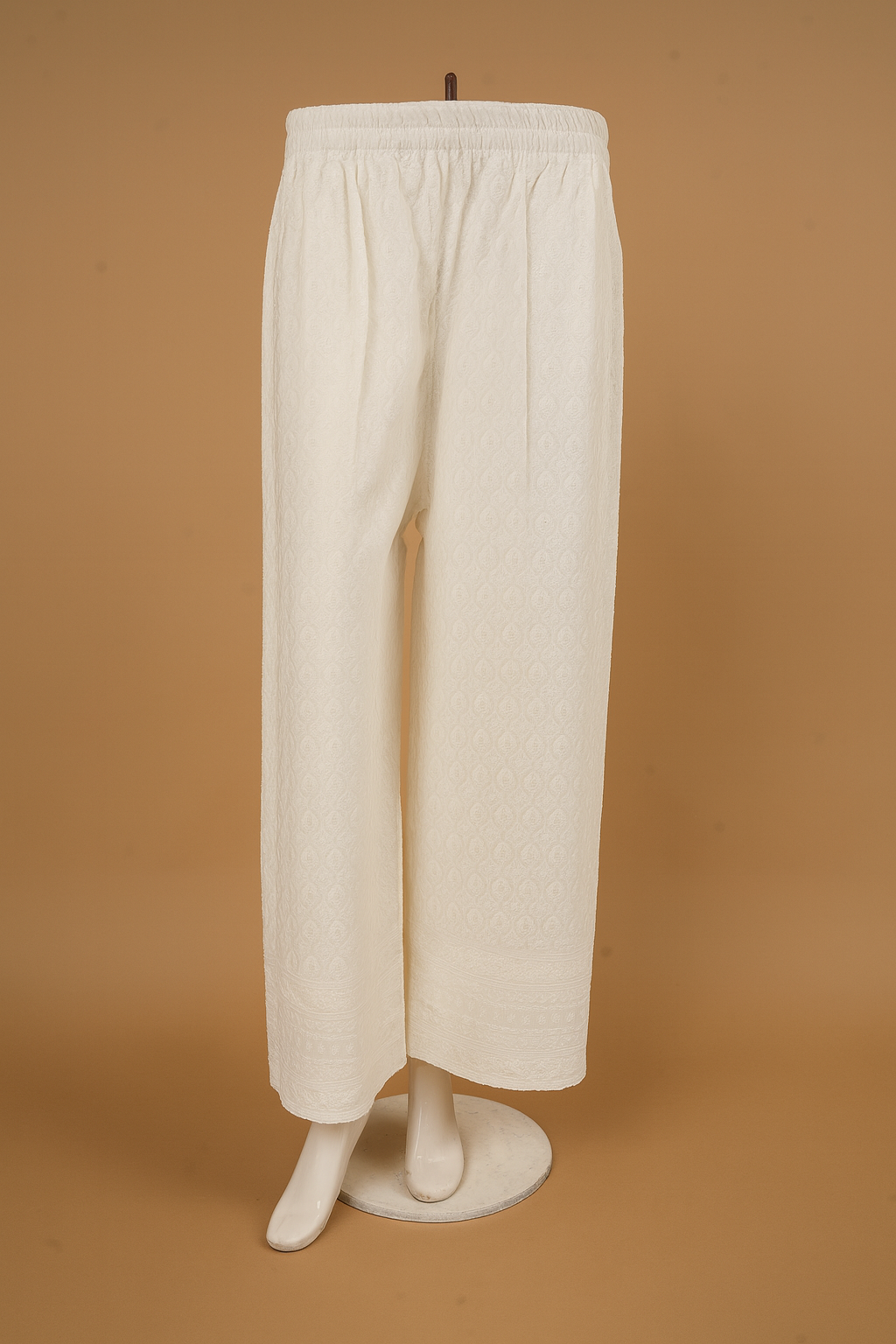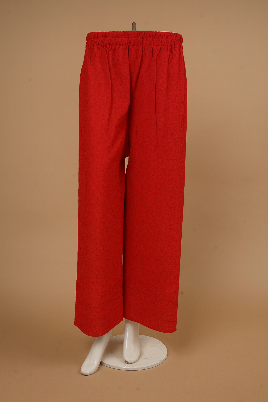 Elevate your everyday style with this beautifully designed palazzo, crafted from lightweight and breathable fabric for all-day comfort. Featuring an elegant self-patterned texture, it combines traditional charm with a modern wide-leg silhouette. The relaxed fit makes it ideal for casual outings, festive occasions, or everyday wear.